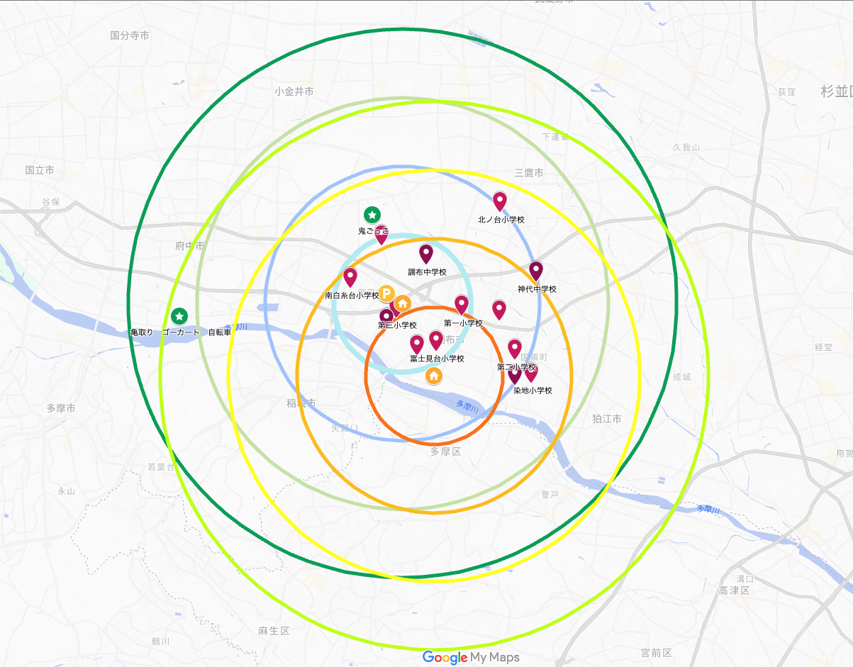 狛江市、府中市、三鷹市、武蔵野市、稲城市